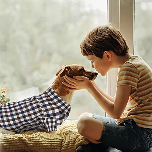 - Practical Design: these dog T-Shirts for pets feature good stitching and stylish plaid pattern, which adds a sense of vitality; With the button design, even if your pet’s head circumference is relatively large, the dog shirts still can be easy put on and take off