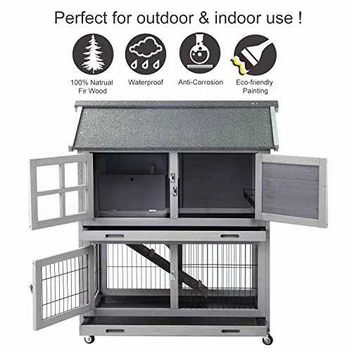 - Waterproof bunny cage with large activity space, 3 access door and ramp, perfect for Outdoor & Indoor Use.