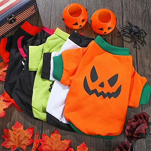 Features: The Halloween pumpkin pet clothes with delicate patterns and vibrant colors look stylish and adorable, which can be applied as nice gifts for your beloved pets, making them charming. Attractive and cool design is able to arouse your pet’s wearing interest, Halloween dog apparel is good to wear on many kinds of occasions like Halloween and other festivals. Specification: Color: colorful Size: as the picture shown Package includes: 5 x Halloween pet shirts Warm notes: Due to the different monitor and light effect, the actual color may be a little different from the pictures. Since the size above is measured by hand, the size of the actual item you received could be slight different from the size above.