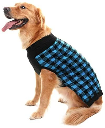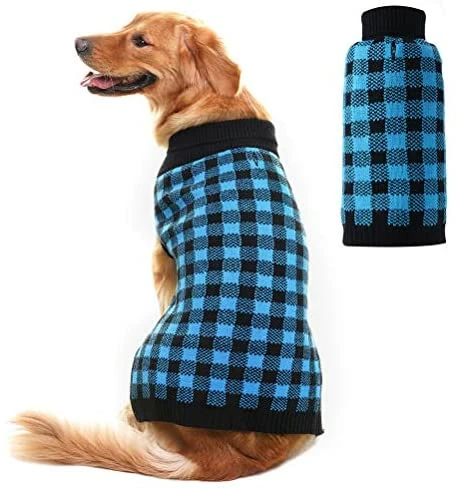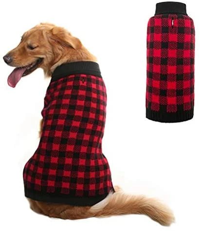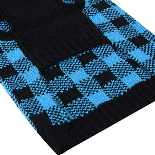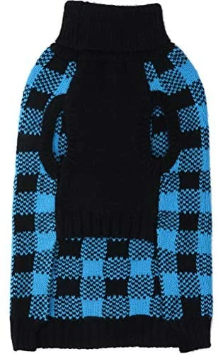 - CLASSIC STYLE: Black round neck plaid sweater with smart designed leash/harness hole. You can easily put any collar or harness to walk your dog.