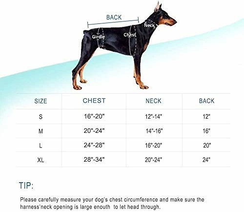 - Size M: Fits dog neck girth 14″, chest girth 20″, back length 16″. Please confirm the suitable dog according to our company’s size table before purchasing.