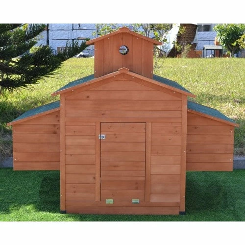 Β Β Β Β This Deluxe Large Wood Chicken Coop Backyard Hen House is constructed by high quality solid Fir wood. All timber are T&G pained to avoid splintering. All joints are mortise and tenon, 2 x access doors for easily catch your pets. Deluxe Large Wood Chicken Coop Backyard Hen House comes with a rear zinc pull out tray for easy cleaning.
