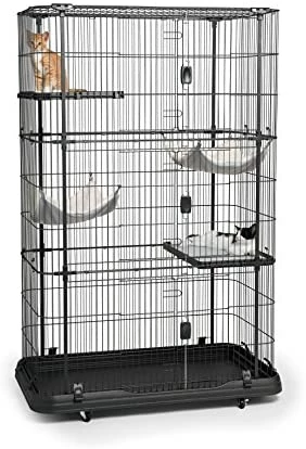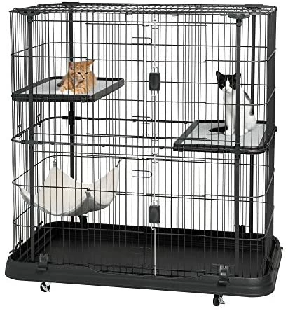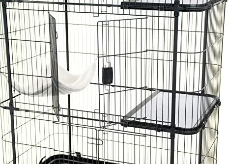 - Deluxe Cat Home – Cat Cage, Black Two extra large hammocks and two lock-in platforms included