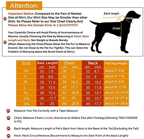 - *1. !Attention! : Usually Choosing the Size by Measuring in Chest, Back Length and Neck, Not Weight or Breeds Merely. Please Refer to Size Chart before Shopping. Size: XL( Chest: 53cm/ 20.8″ ; Back: 39m/ 15.4″; Neck: 35cm/ 13.7″ )