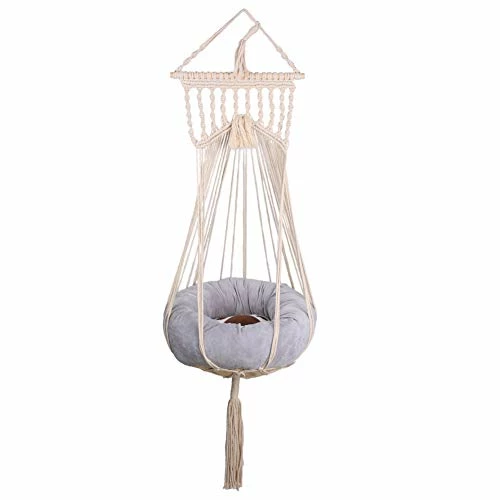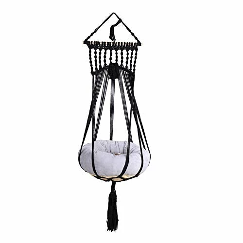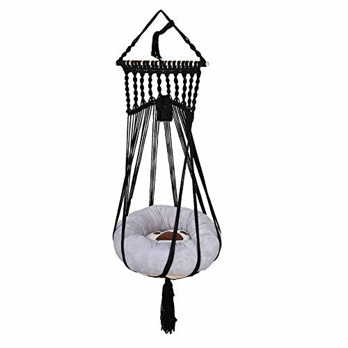 Macrame hammock for the cat, hanging, made of cotton string. Pillow is included The hammock can be hung as you like. for example : a durable curtain rod in the window, bedroom wall etc. Size๏ผ 39 inches length , 13 inches width