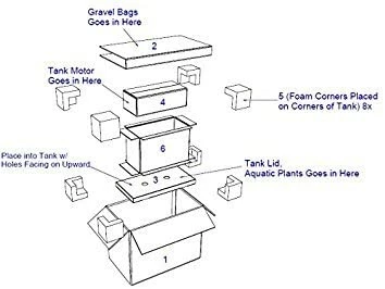 - Includes: black background, multi-colored gravel, three plants, fish food and water conditioner