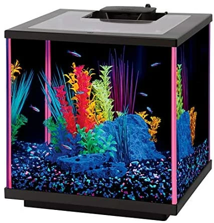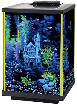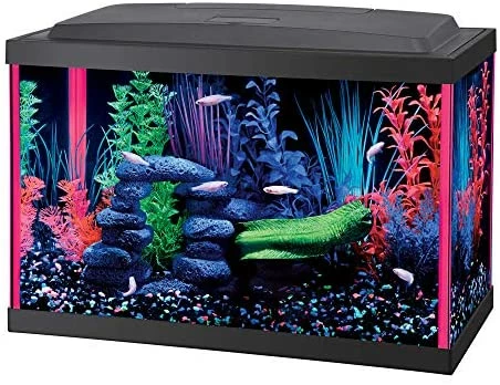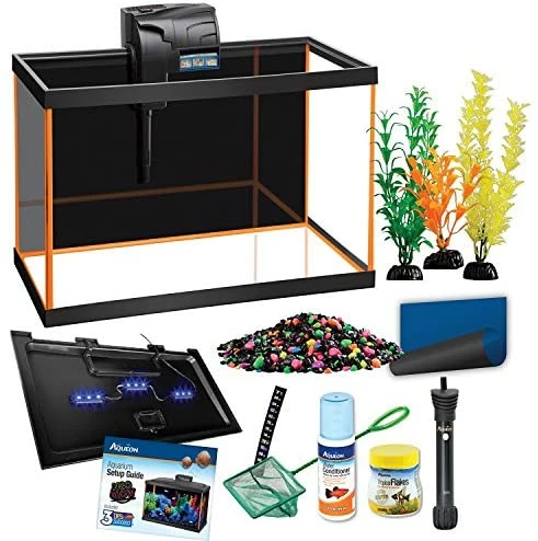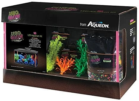 - Aqueon Fish NeoGlow LED Aquarium Starter Kits10 Gallon Glass Aquarium with orange fluorescent silicone