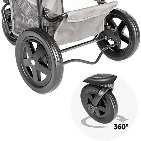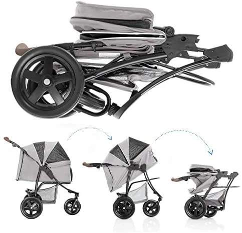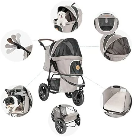 - HIGH COMFORT PET GEAR: The luxury dog stroller provides more comfort than cheaper pet buggies. No more back pain thanks to the height adjustable handle. Large strong wheels allow you to push the stroller even on forest trails, bumpy roads or dirt tracks.