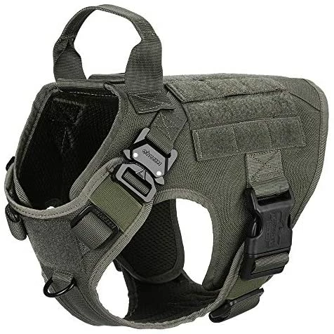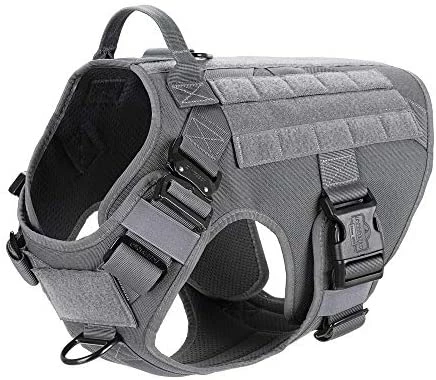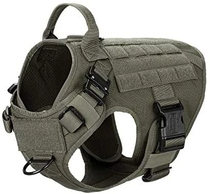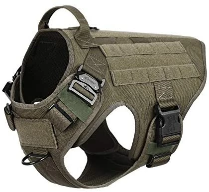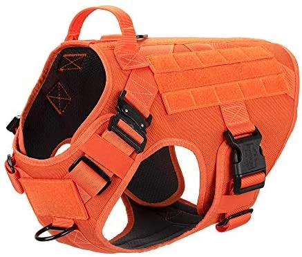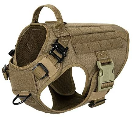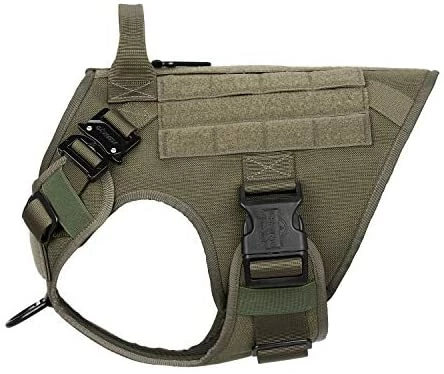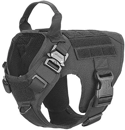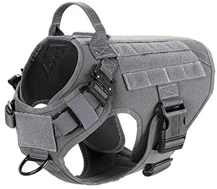 - [HANDS FREE CARRYING ]:Two 1″ Strips of Molle Sewn Onto Both Side,Allow Your Dog to Carry Gear in Training / Daily Walking/Adventure Hiking, it Compatible with Molle /PALs Pouch,You Can Aslo Hook Dog Bowl,Water Bottle and Toy Through D shape Carabiner (No included)
