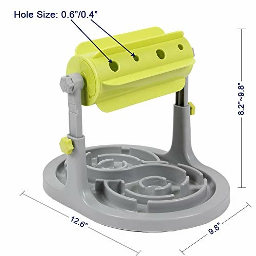 - : Interactive Dog Cat Training Treats Toy Adjustable Height(7.1″-10.6″) makes it suitable for medium/small-sized dogs and catsΒΈ; non-slip design on bottom ensures the toy won’t be pushed or pulled by pets. The Puzzle bowl at bottom will avoid your pet eating too fast or too much.ΒΈ