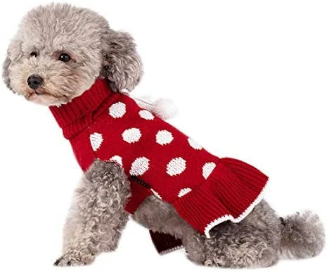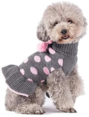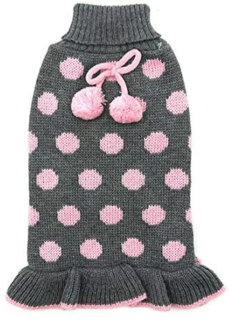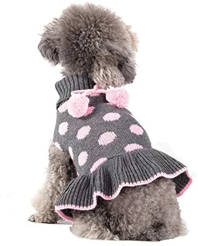 - Dog sweater dress with cute pom pom ball on the back , cute ruffle dress design great for girl dog sweater.