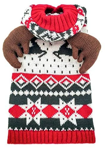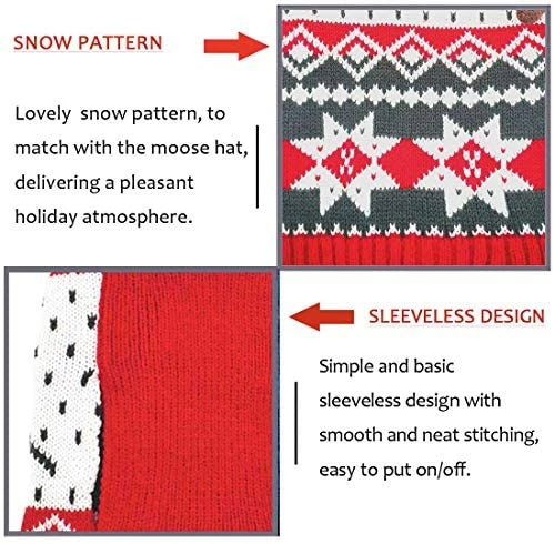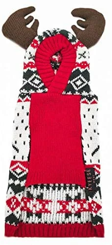 - Red dog sweater hoodie with reindeer pattern great for Christmas and holiday celebrations.Dog sweater with smart leash hole on the back for a easy leash attaching.