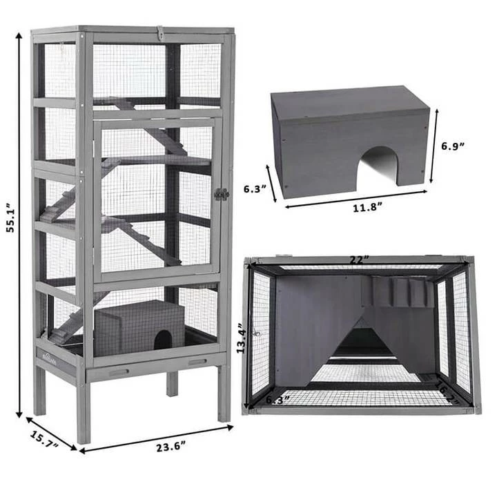 【Large Space for Fun】Big 5 levels guinea pig cages provides enough space for 2-3 hamster, ferret, hedgehog, chinchilla, gerbil, rat, furry friends or other small animals to live and have fun. An extra-large cage provides room for even the most energetic pet.