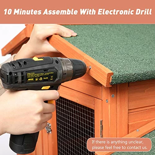 - 【Easy Assemble and Clean】Simple overall structure which is quite easy to assemble, it is better to use electronic drill to assemble, and the estimated assemble time is about 20 minutes. Removable tray makes it easier for you to clean the hutch, a cleaner hutch will give your pet a more comfortable experience to live in.