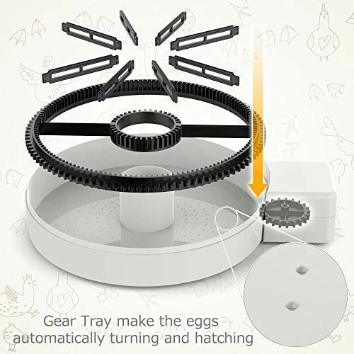 - Auto Turning Eggs Two gears and eight shafts make up an egg turner. Eggs are twirling is almost invisible, but the apparatu does spin eggs and make them heated equably. You don’t need to turn the eggs manually.