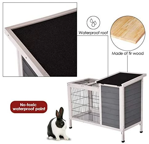 - Lovupet Wooden Rabbit Hutch Material: Made by Fir with environment-friendly water-based paint. Including a main house and a Yard. Asphalt waterproof material on top.