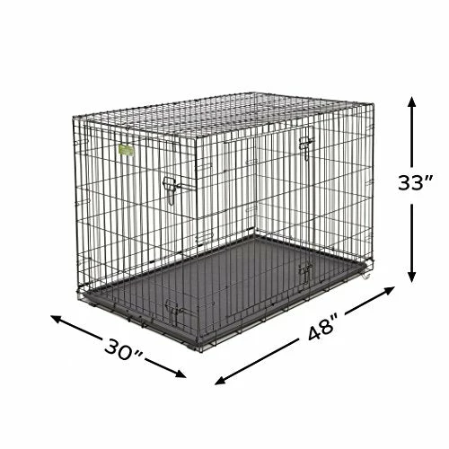 - XL DOUBLE DOOR FOLDING DOG CRATE ideal for dogs w/ adult weight of 90 – 110 pounds | Convenient divider panel allows crate to expand as your dog grows | iCrate measures 48L x 30W x 33H inches