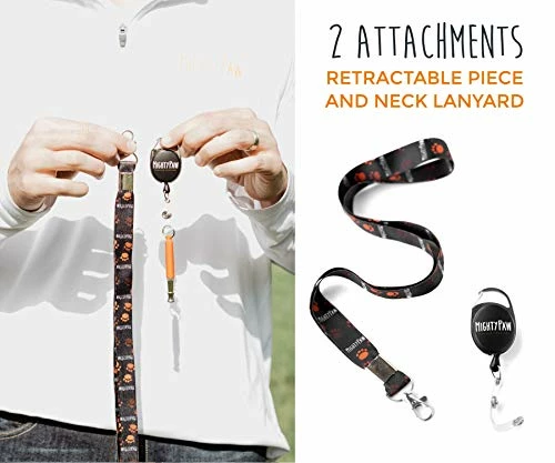 - STAY MODERN Two attachment options. Use our super soft neck lanyard or our our modern retractable clip option. When training the whistle will be right where you need it, when you need it. Attach it to your belt loop or treat pouch.