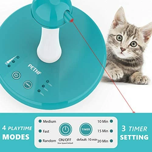 - 4 SPEED MODES: This laser toy for cats and kittens has 4 speed modes, slow(default), medium, fast and random. It is convenient for you to adjust the different speed modes for different cats or dogs. Helps your pet maintain his or her natural hunting skills and improves mood and appetite. Besides, it will swing when cat touches it, without the laser pointer, it also can be just used as a tumbler toy.