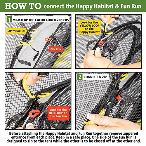 Every cat deserves a day in the sun and our Kitty Compound Happy Habitat and Fun Run offer the perfect solution They provide a safe environment for your indoor cat to enjoy time outside with over 30 square feet of activity space a 360-degree view and an attachable tunnel that offers new ways for your pet to explore They can be used together or separately and are perfect for everyday use on your deck lawn balcony and more! Cats have a strong desire to go outside and often the risks are too high for them to roam free Our secure cat enclosures give your cat access to outdoor sights sound and smells in a safe place They are the perfect size for your cat to play pounce or curl up for a nap Our unique design makes it easy to connect the Fun Run and Happy Habitat to create the Kitty Compound Set up is easy and no tools are required For travel and storage they fold tightly into convenient carry bags which are included