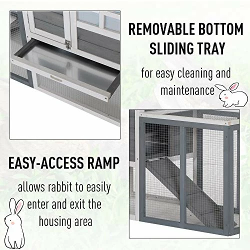 - ✅COMPREHENSIVE DESIGN: Designed with your pet in mind, one side of the enclosed hutch is built for privacy and rest while the other offers a more open style built for play. This rabbit hutch allows you to separate and house your furry friends on different levels.
