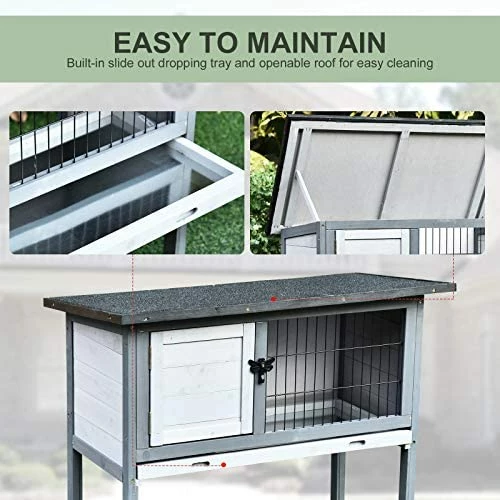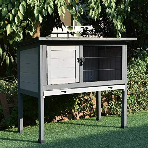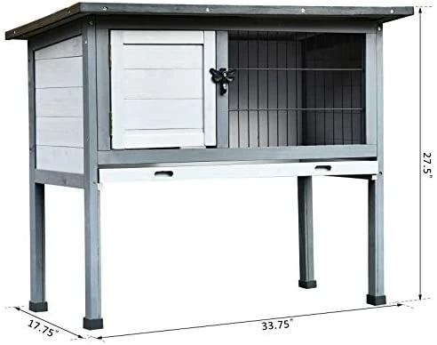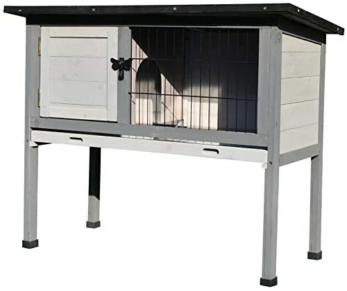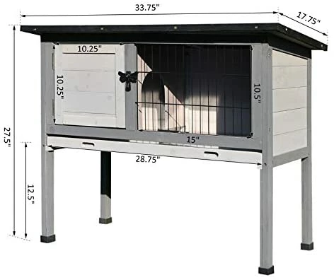 - STURDY CONSTRUCTION: This elevated rabbit hutch is made of solid fir wood and painted with safe non-toxic paint for a strong, long lasting finish. Small rabbit cage,recommended for one rabbit.