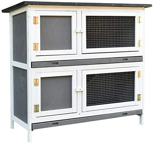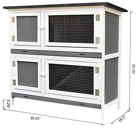 - 2-MAIN-ROOM HUTCH: This rabbit hutch features two main living rooms, offering room to keep more than one rabbit or similar animal.Overall Dimension: 39.25″ L x 18.5″ W x 35.75″ H