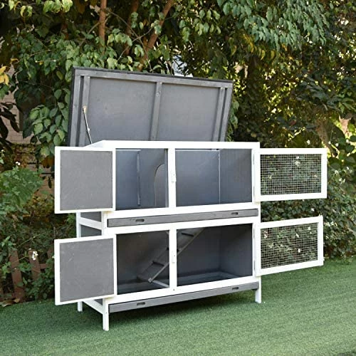 - CLEANING IS A BREEZE: With two pull of trays for each of the main compartments, cleaning these rabbit cages is incredibly easy and intuitive.