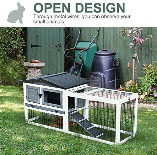 - 2 STORIES OF SPACE: This spacious rabbit hutch features a main room built for living and sleeping, a side patio for playing, and a bottom floor for running around, meaning your rabbit or other small animal has tons of area to stretch out in.