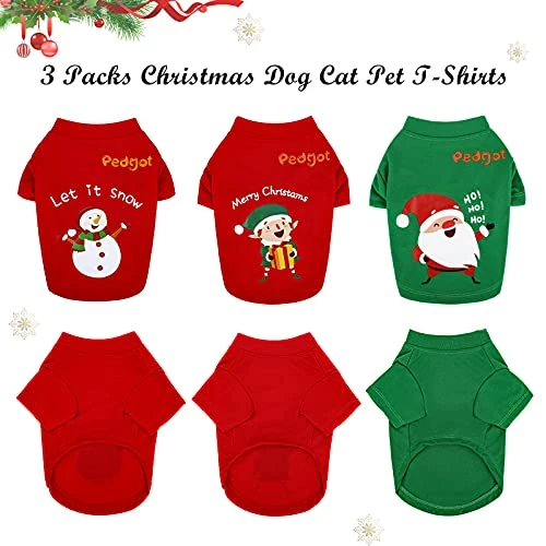 - Packaging: you will receive 3 packs of Christmas pet T-shirts in red and green colors; there are 3 adorable patterns printed on the Christmas holiday dog cat pet shirts for you to choose from: Santa Claus, Snowman and Elf, suitable for celebrating Christmas with your pet