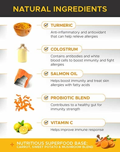 - GIVE YOUR DOG ALLERGY RELIEF – PetHonestyâs Allergy Relief and Immunity Chews use the power of all-natural ingredients to address internal and external symptoms to alleviate your dog’s seasonal, skin, environmental and food allergies.