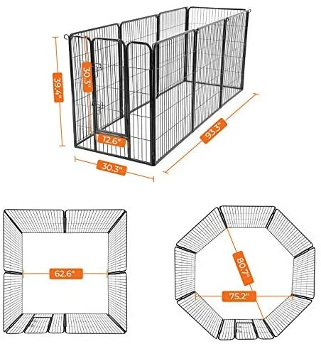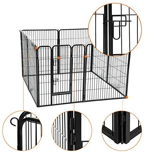 - A SNUG SPACE: A family gathering in the garden doesn’t mean you have to leave your dog inside alone. Invite him to enjoy the happy moments with everyone nearby in the pet playpen with 8 panels sized at 77 x 100 cm each. If you happen to have a mommy dog at home, this dog enclosure also works great as an indoor nursery