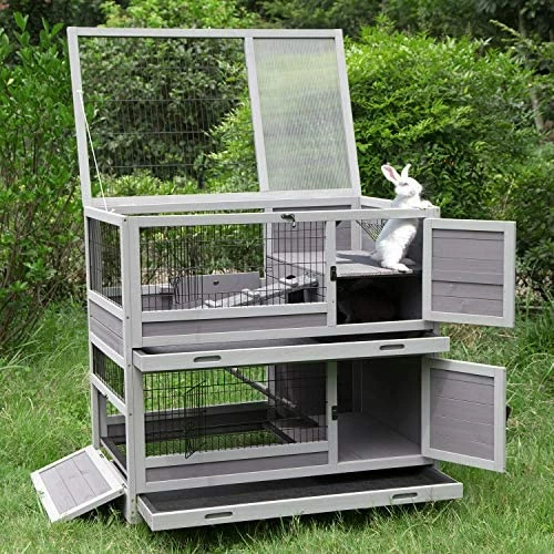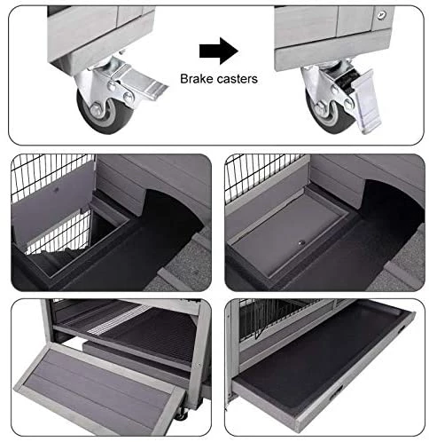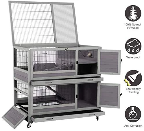 - Aivituvin Rabbit Hutch Indoor and Outdoor Bunny Cage UPGRADE VERSION: Rabbit hutch with 2 DEEPER removable pull out tray ! NOT LEAK! Better plastic quality, easy to clean !