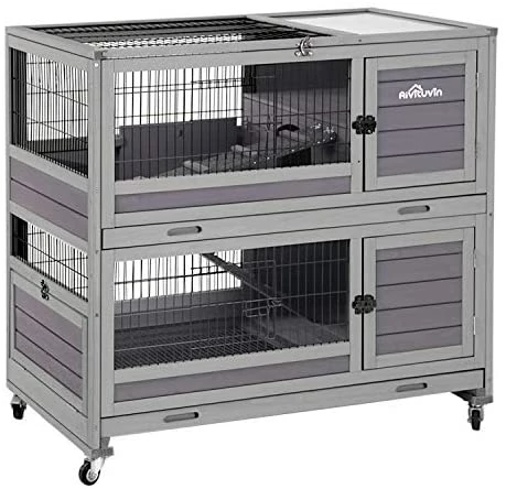 - Aivituvin Rabbit Hutch Indoor and Outdoor Bunny Cage UPGRADE VERSION: Rabbit cage on 4 wheels easily to move,2 of them are locking wheel to fix well and safe.