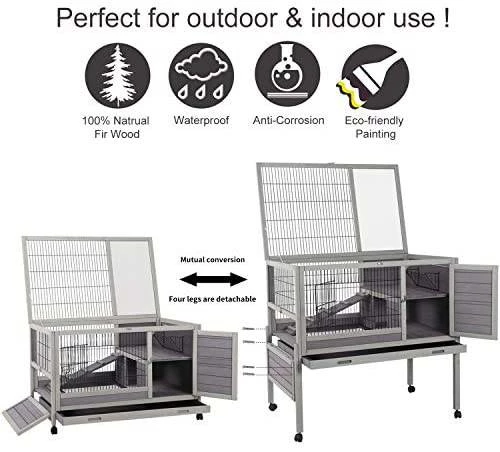 - Aivituvin Rabbit Hutch Indoor and Outdoor Bunny Cage UPGRADE VERSION: Guinea pig cage with DEEPER removable pull out tray ! NOT LEAK! Better plastic quality, easy to clean !