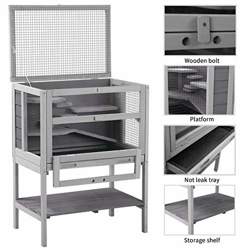 - β Hamster Cage Wooden Rat House Indoor Outdoor Sugar Glider cage made of solid fir wood, painted with eco-friendly waterproof natural non toxic to animals, suitable for indoor and outdoor use.