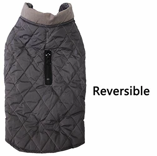 - Reversible,Made of 3 Layers Material.1:Dark gray+Light gray stitching design,simple fashion; 2:Soft waterproof fabric,lightweight and comfortable; 3:Middle cotton layer,keep your puppy warm in cold winter;