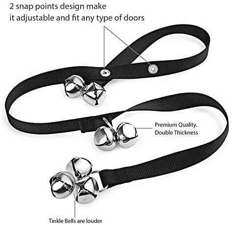 - Our potty training door bells are constructed using the highest quality standards. They are made to be top-notch.Nylon Adjustable doorbell strap & 7pcs 1.4″ Extra Loud stainless stell Bells. Black strap with polished metal hardware looks great in virtually any home.