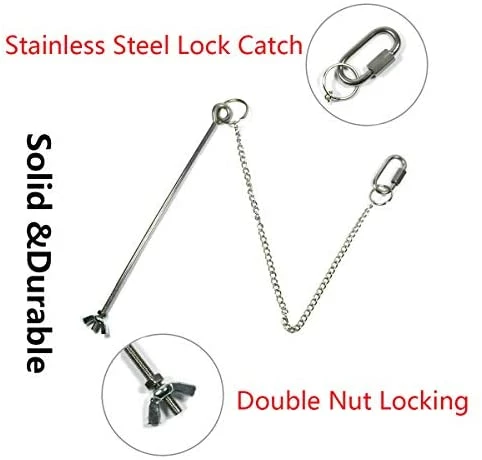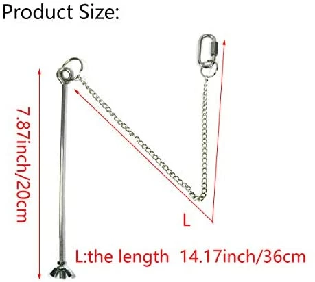 - Materials and Size: The chicken veggies fork with chain is made of stainless steel, the fork is about 7.87inches long, and the chain is about 11.81inches long. Long enough to skewer a cabbage or a lettuce for your chickens or other large medium birds, for example African Grey Macaws Eclectus Amazona.