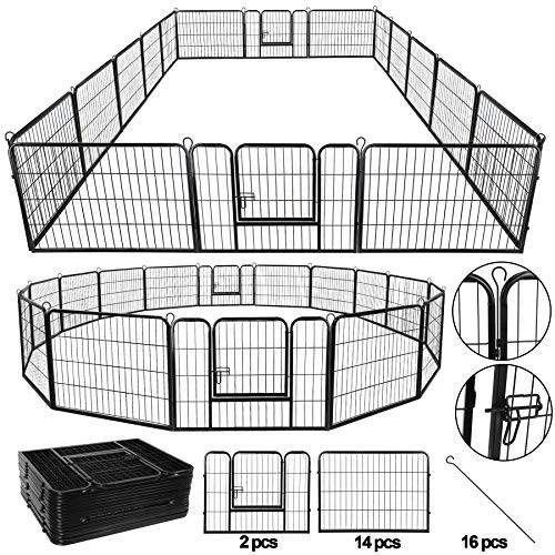 - ZENY Fold able Metal Pet Exercise Pen Multiple Shape Configurations — 16-panel design allows for multiple shape configurations and can be split into two 8 panels to meet your needs, such as the shape of rectangle, square or octagon.